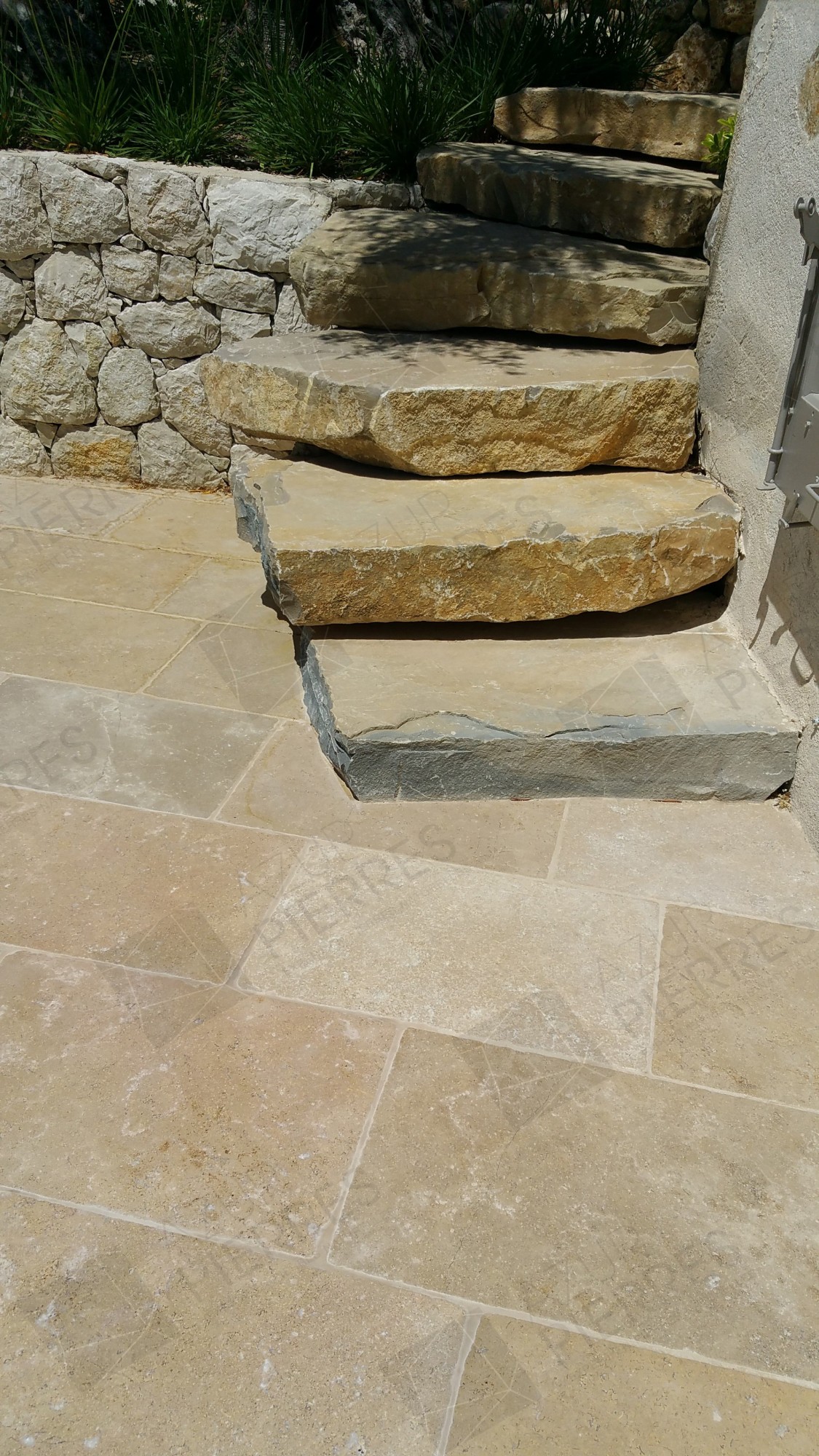 La pierre Château Villebois est très polyvalente. Sa couleur et sa finition vous permettent de l’utiliser aussi bien en intérieur que pour tous types de pièces. Présentée ici en finition Cathédrale, n'hésitez pas à découvrir toute la gamme des finitions pour adapter le dallage à votre usage.