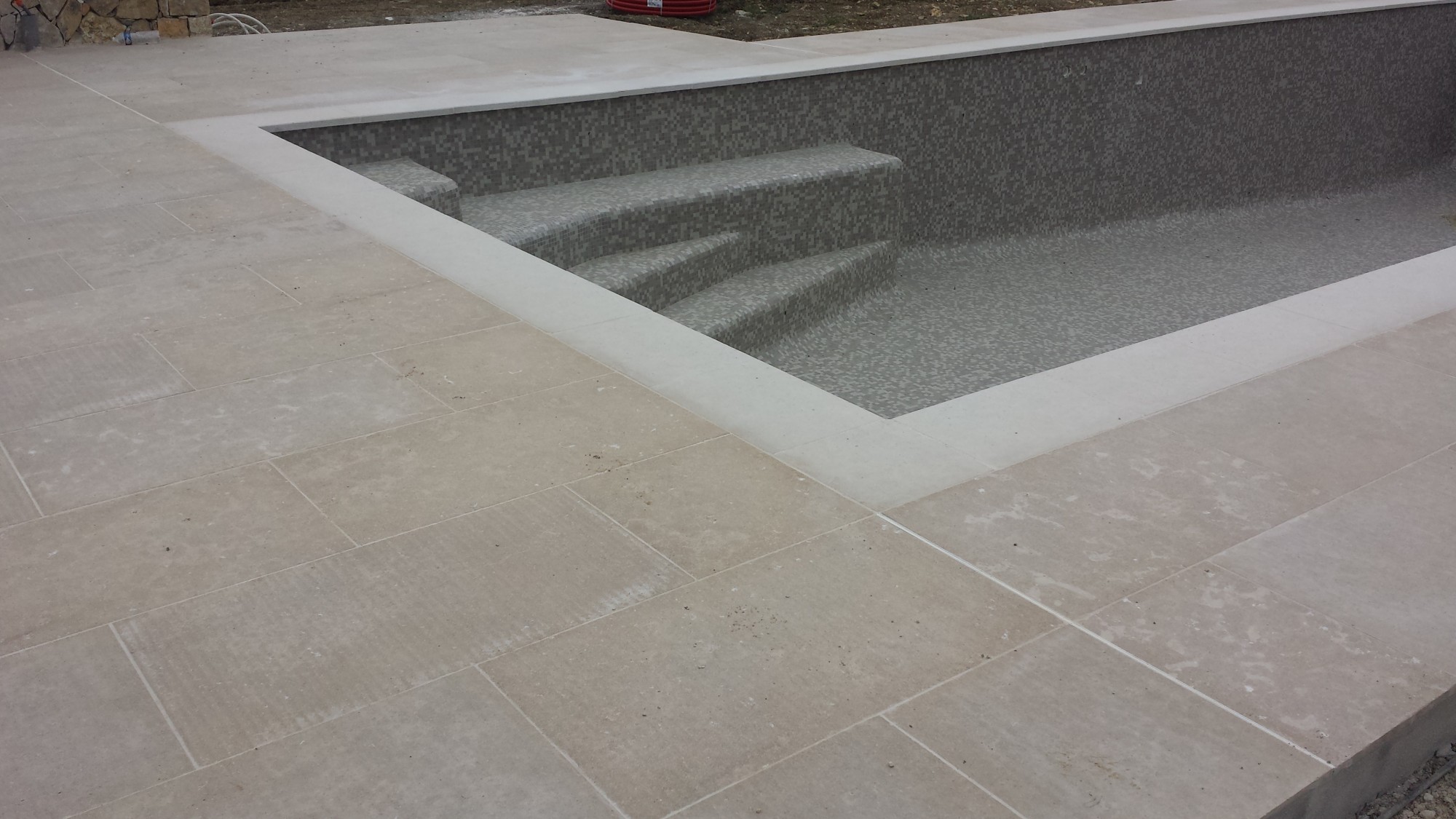Imperméabilisation avant jointement : Après la pose, nous vous conseillons d’appliquer un imperméabilisant avant de procéder au jointement. Ce traitement protégera la couleur et la qualité de votre dallage sur la durée, tout en réduisant l’apparition de salissures. Ainsi, votre pierre restera belle et ne se ternira pas avec le temps.