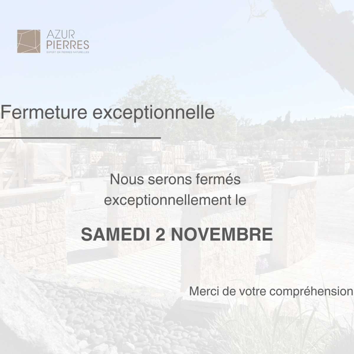 Nous vous informons qu’Azur Pierres sera exceptionnellement fermée le samedi 2 novembre 2024 pour procéder à notre inventaire annuel.