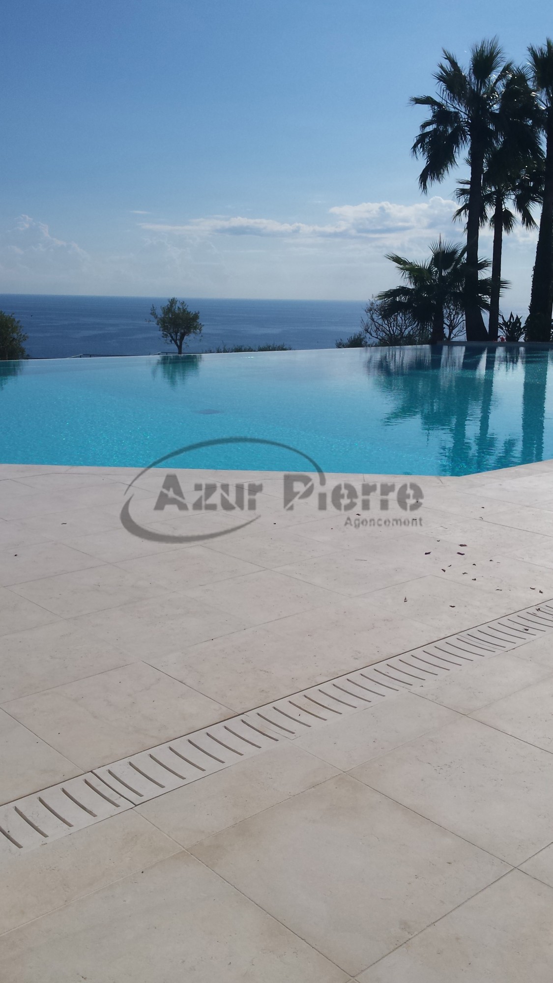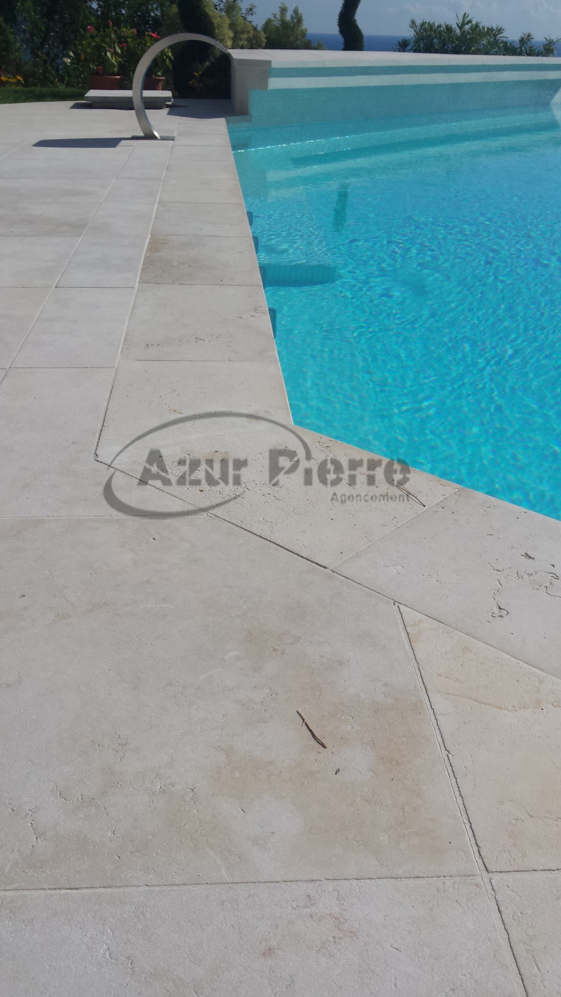 Cette pierre dans les tons blancs crème donne un éclat absolu à votre terrasse. En finition brossé ou sablée, ce dallage aux bords droits existe chez AZUR PIERRE sous 3 dimensions