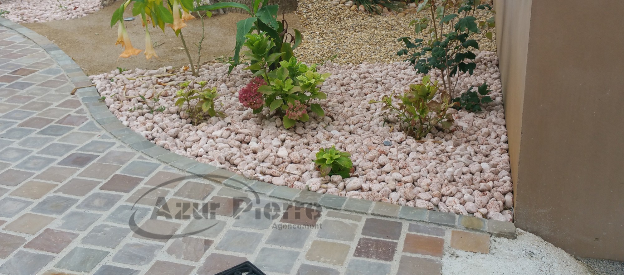 Nous vous proposons du galet marbre rouge de Vérone pour aménager vos jardinières et créer un espace décoratif.