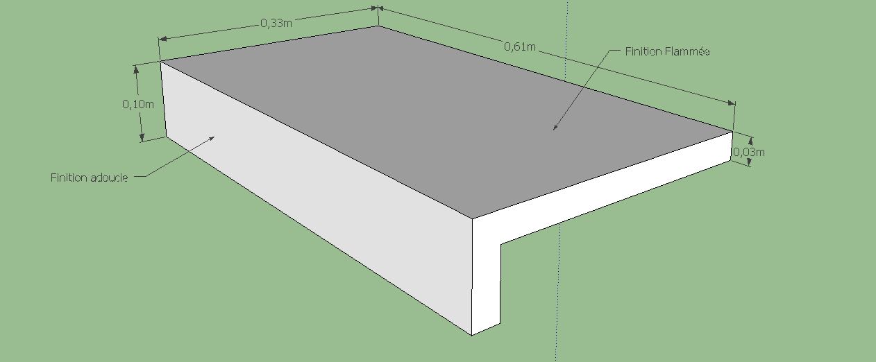 | Finition | flammée brossé sur le dessus et adoucie sur un long chant |