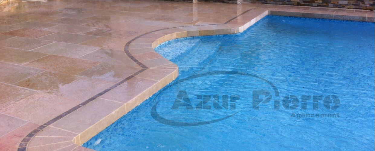 Vous souhaitez créer ou rénover votre PISCINE de manière MODERNE avec des tracés géométriques et épurés, Azur Pierre vous propose sa MARGELLE débillardée en PIERRE NATURELLE.