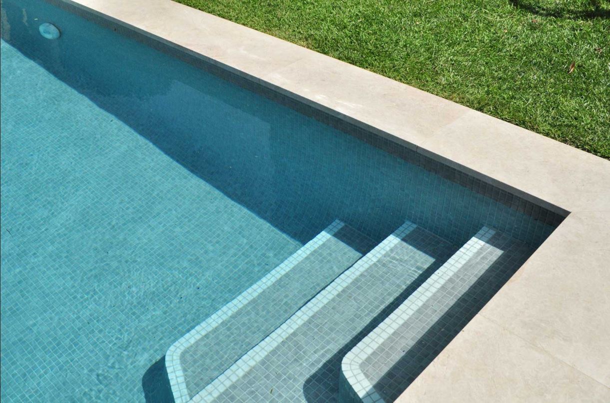 Effet béton ciré pour une eau uni pour cette mosaïque pour piscine