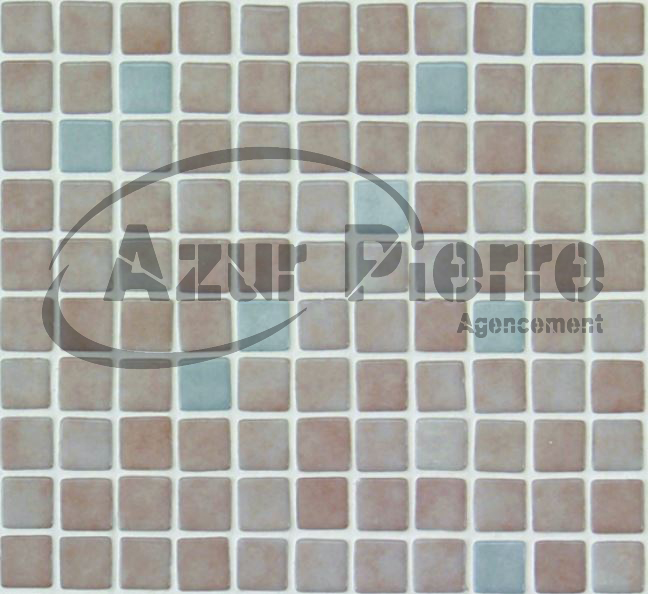 Mosaique piscine rose nuancé pour une eau bleue lagon.