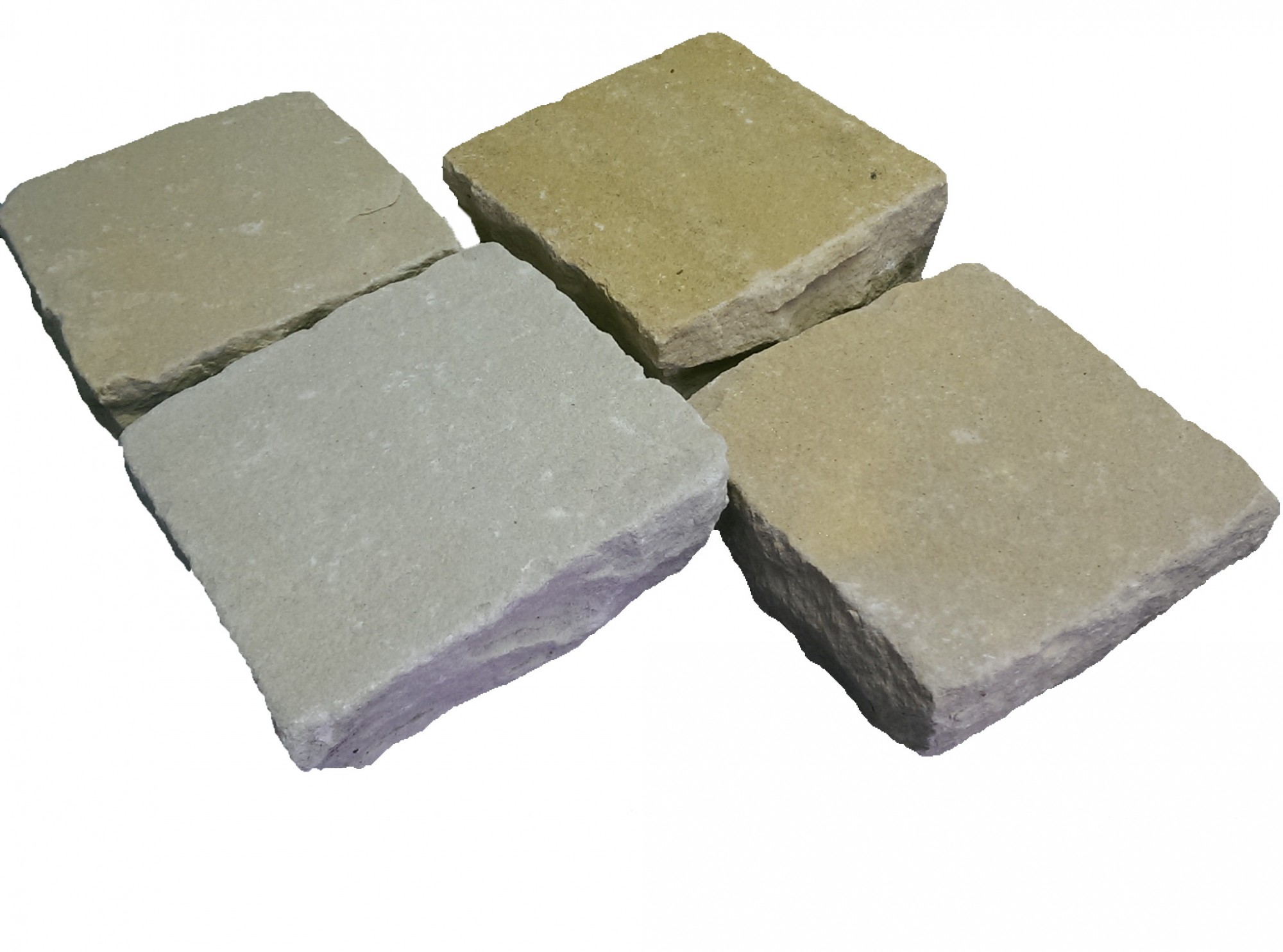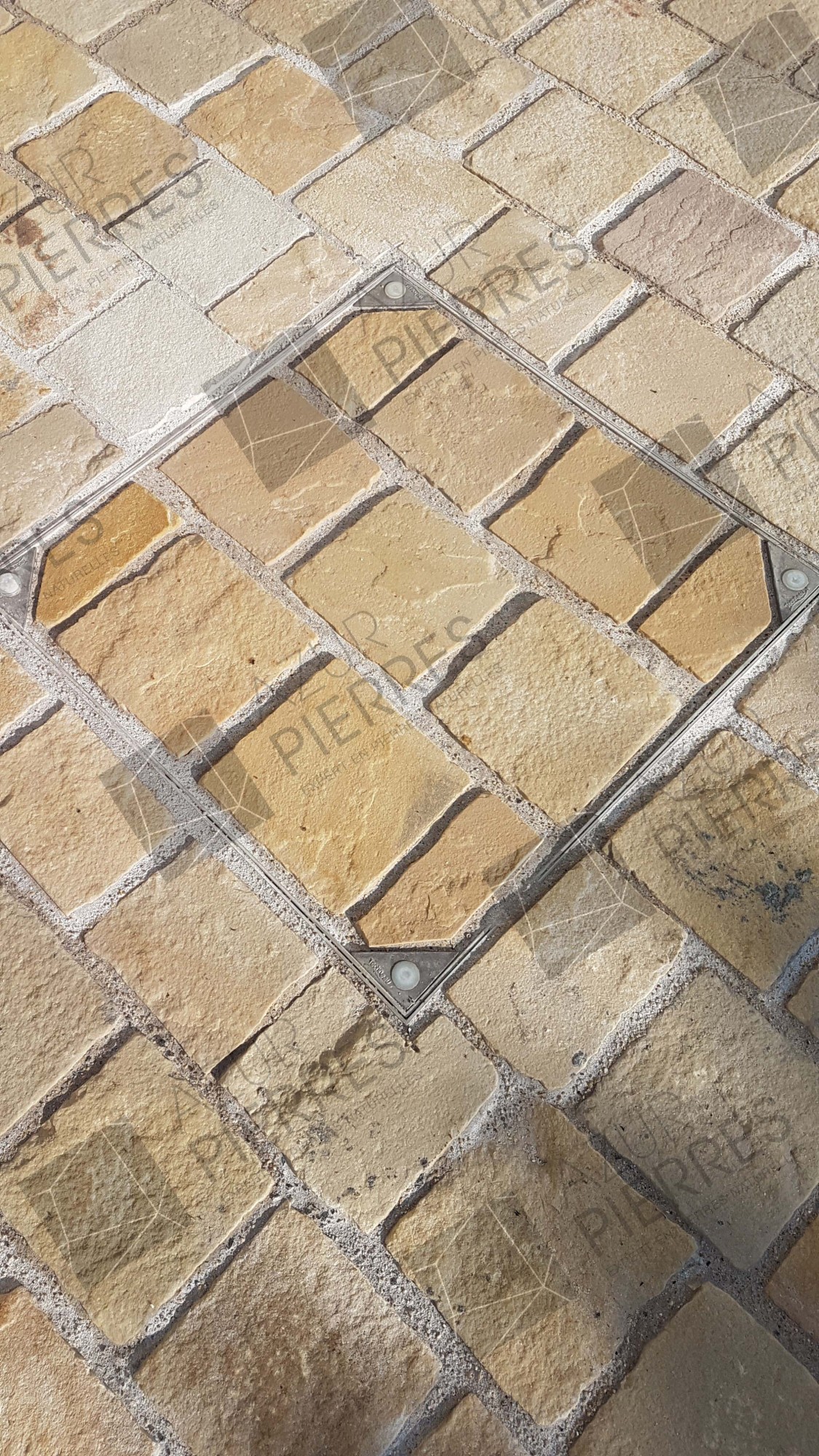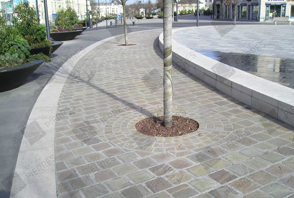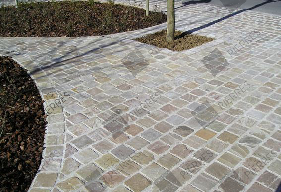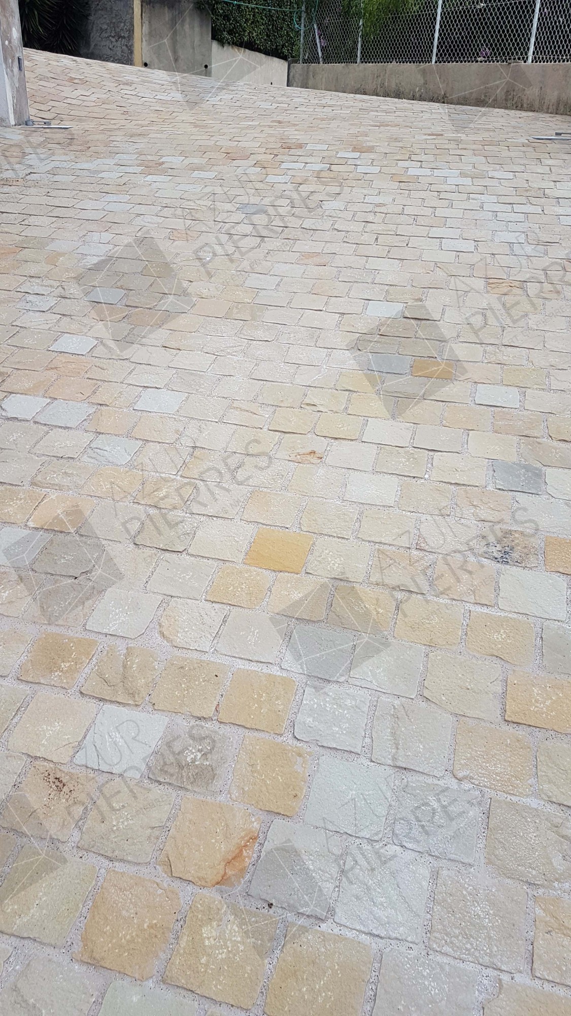 Azur pierre vous propose son pavé en grès multicolore de ton beige naturel pour vos voies d'accès villa et cheminement.