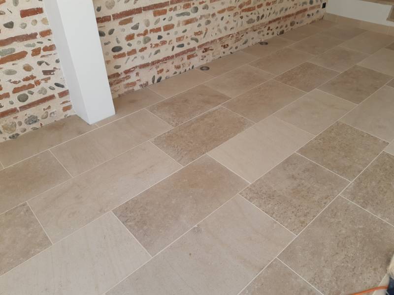 La pierre de Bourgogne Ampilly en finition brossée est un choix idéal pour sublimer vos sols intérieurs avec une touche authentique et intemporelle. Extraite des carrières bourguignonnes, cette pierre calcaire se distingue par ses teintes beige douces et son aspect légèrement patiné, offrant un rendu chaleureux et élégant.