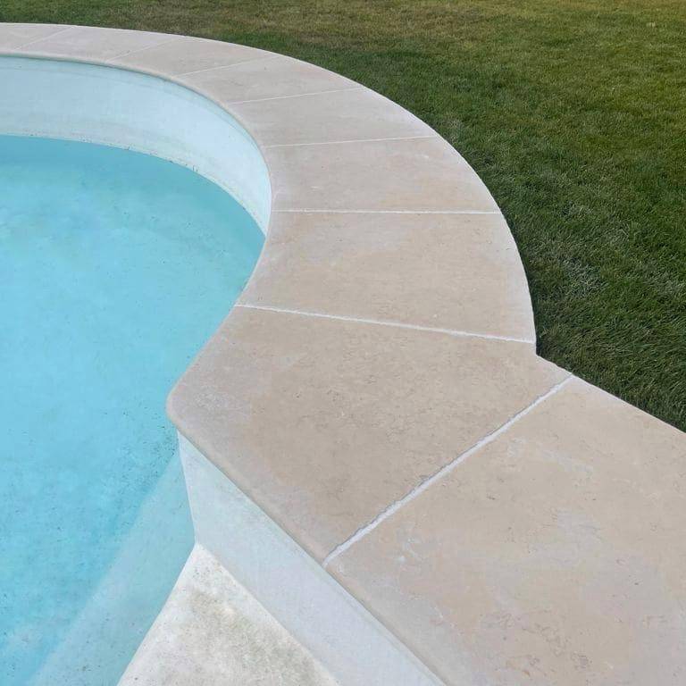 Chaque détail a été soigneusement pensé pour garantir une parfaite harmonie. Les margelles de piscine, entièrement façonnées sur-mesure, suivent avec précision la courbe arrondie du bassin, créant ainsi une finition élégante et une transition fluide entre la piscine et l’espace extérieur. À l’intérieur, l’escalier en pierre naturelle avec ses marches arrondies devient un élément central, sublimant l’espace avec son design fluide et raffiné. Chaque marche a été conçue spécifiquement pour s’intégrer parfaitement au projet, apportant confort et esthétisme tout en renforçant l’élégance de l’ensemble.